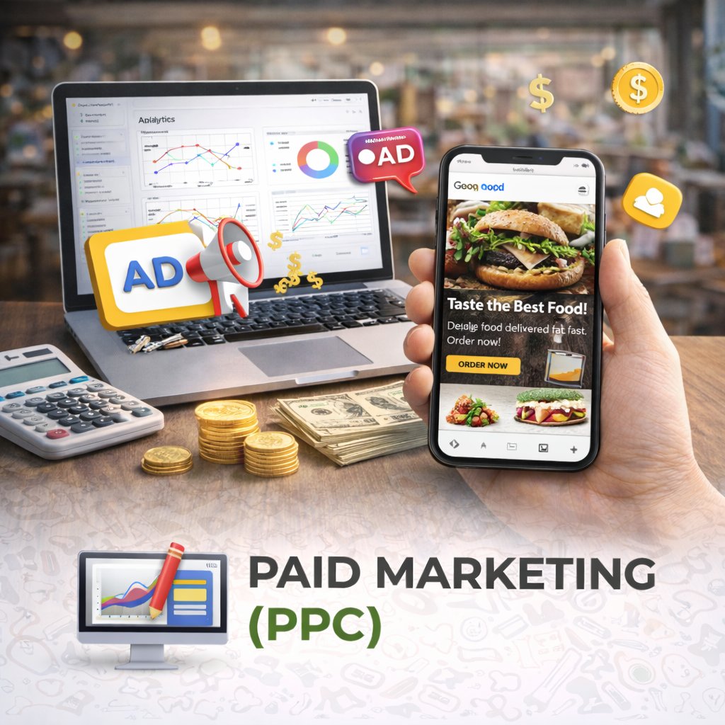 Get instant visibility and quick results with our paid advertising solutions. We manage Google Ads and social media ads that target hungry customers, increase orders, and deliver maximum ROI with controlled ad spend.
